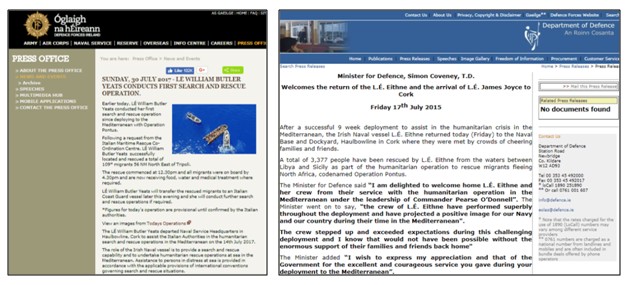 Il Dipartimento della Difesa Irlandese, a differenza del silenzio del Governo italiano, ci rispose immediatamente: “L’invio delle navi della Marina Militare Irlandese per intraprendere attività di ricerca e salvataggio umanitario nel Mediterraneo è implementato nell’ambito di un accordo bilaterale con il governo italiano. L’accordo bilaterale è stato istituito per la prima volta nel maggio 2015” e confermando anche i rinnovi del 2016 e del 2017. Dublino ha anche aggiunto che “Il coordinamento delle operazioni di ricerca e salvataggio e la conseguente fornitura di assistenza umanitaria, avviene grazie alla stretta collaborazione con le autorità italiane competenti” e quindi che i migranti salvati sono stati tutti portati nei porti siciliani.