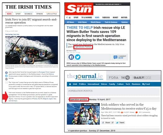 Questo non è successo in Irlanda. Sia i siti istituzionali governativi sia la stampa nazionale hanno documentato orgogliosamente i salvataggi dei 18 mila migranti portati in Italia dalle navi militari LÉ Samuel Beckett, LÉ Niamh, LÉ James Joyce, LÉ Roisin, LÉ Eithne e LÉ William Butler Yeats, che si sono avvicendate per 3 anni nel Mediterraneo.